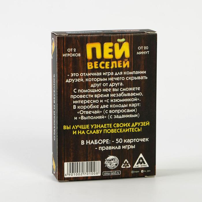 Купить игра для компании "пей веселей" 50 карт от 180 руб. с доставкой до пункта выдачи в Городовиковске. Интернет магазин ДекаМаркет. Оплата при получении.